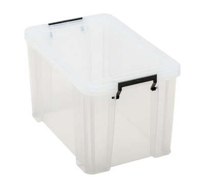Stackable clip-lock clear boxes ideal for business or home storage