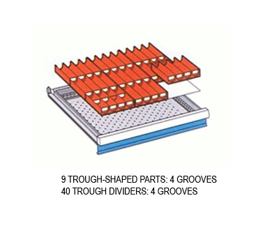 Lista internal drawers have a grid spacing unit of 17mm in width and depth.  Thanks to this universal basic grid, partition materials can be used across the whole lista product range.
