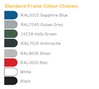 - Colours: -RAL5010 Sapphire Blue, RAL7040 Goose Grey, 14C39 Holly Green, RAL7016 Anthracite, RAL9006 Silver, White or Black